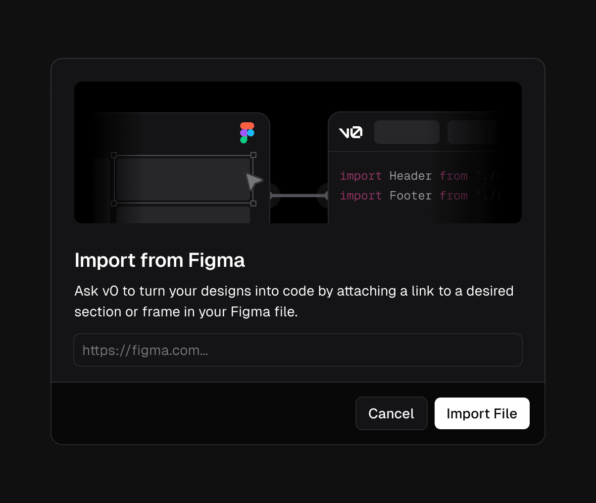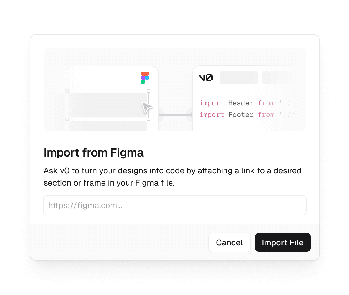 Designers can rapidly prototype and visualize ideas in code with v0, bridging the gap between design and development and streamlining the handoff process. v0’s Figma integration gives your generations a starting point from existing designs.