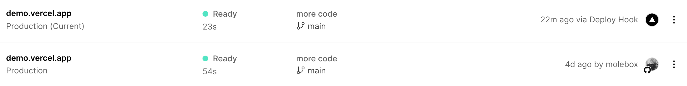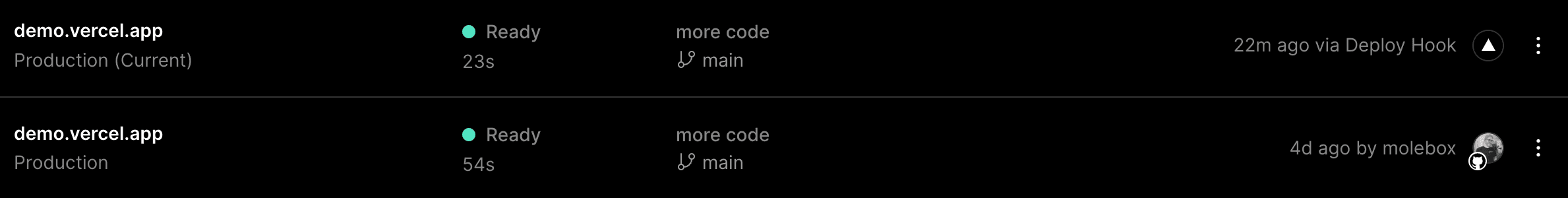 This feature allows you to integrate Vercel deployments with other systems. For example, you can set up: