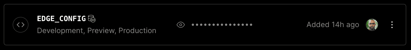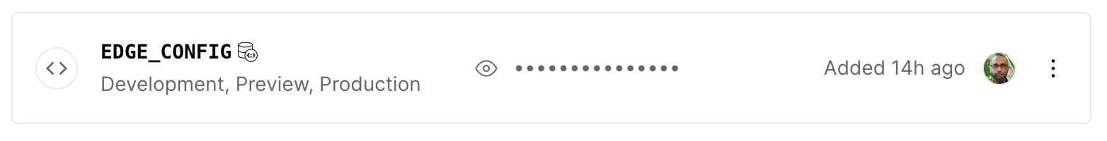 - You see the Edge Config icon on the row for the connected environment variable on the Environment Variables page of your project settings