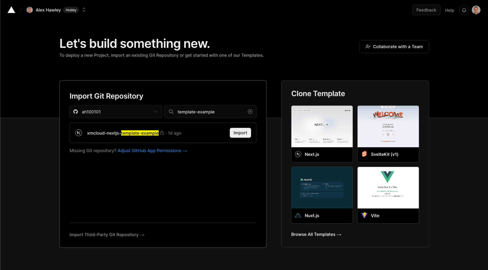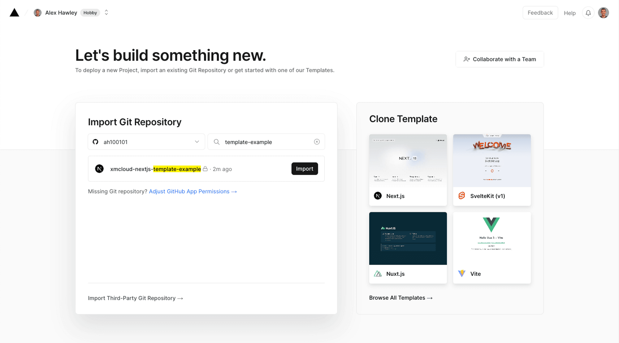 You can either deploy the template above to Vercel with one-click, or use the steps below to clone it to your machine and deploy it locally.
