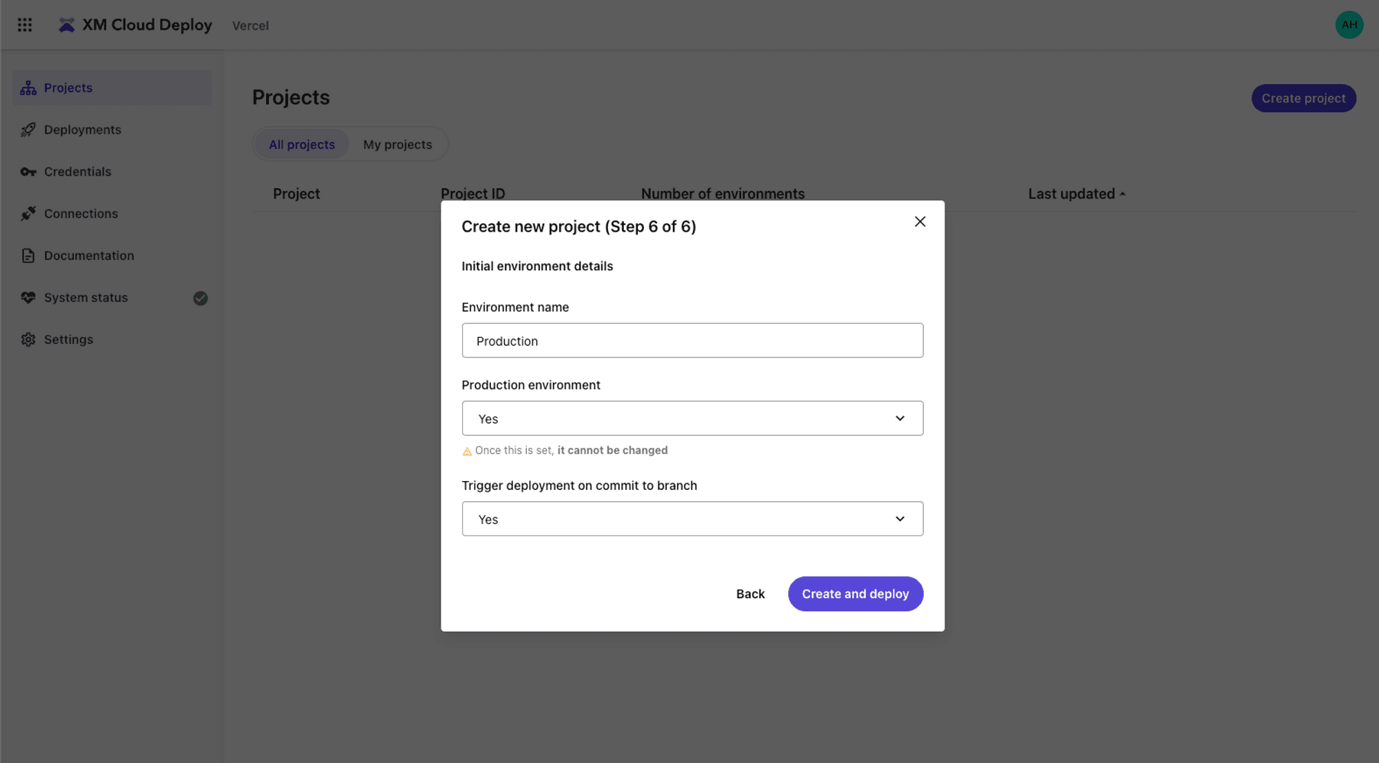 - Decide if you want automatic deployments upon commits to the linked repository branch using the Trigger deployment on commit to branch drop-down menu