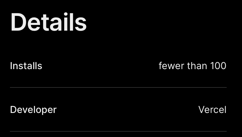 | next | Encoded URL to redirect to, once the installation process on your side is finished. | https%3A%2F%2Fvercel.com%2F... |