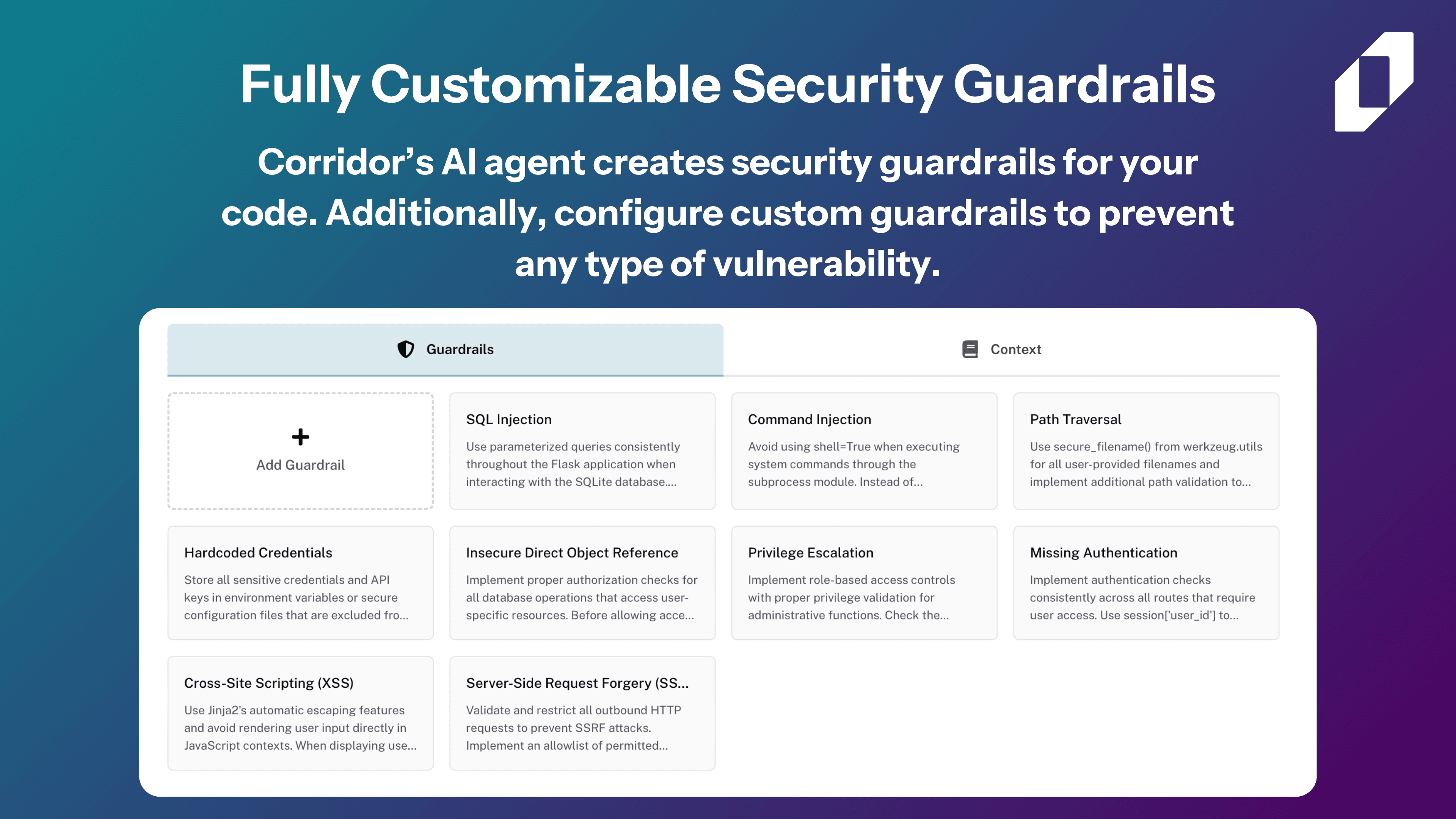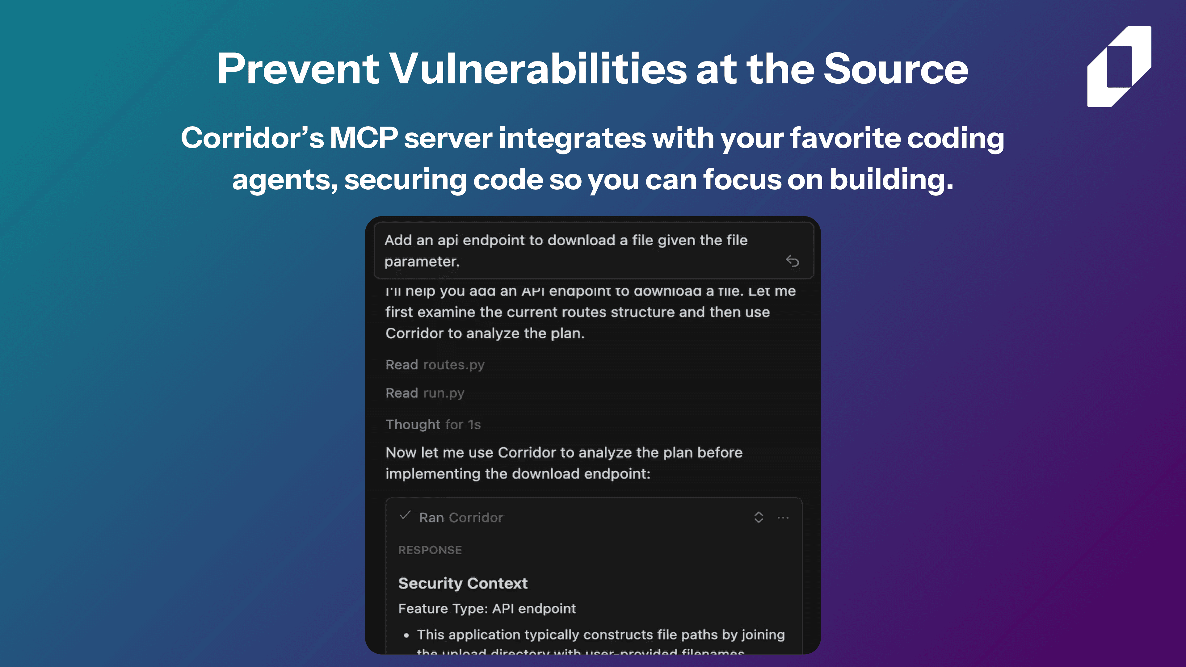 - Corridor's MCP server proactively enforces security guardrails within your favorite IDE (Cursor, Claude Code, Windsurf, and VS Code / Copilot), without adding any extra work.