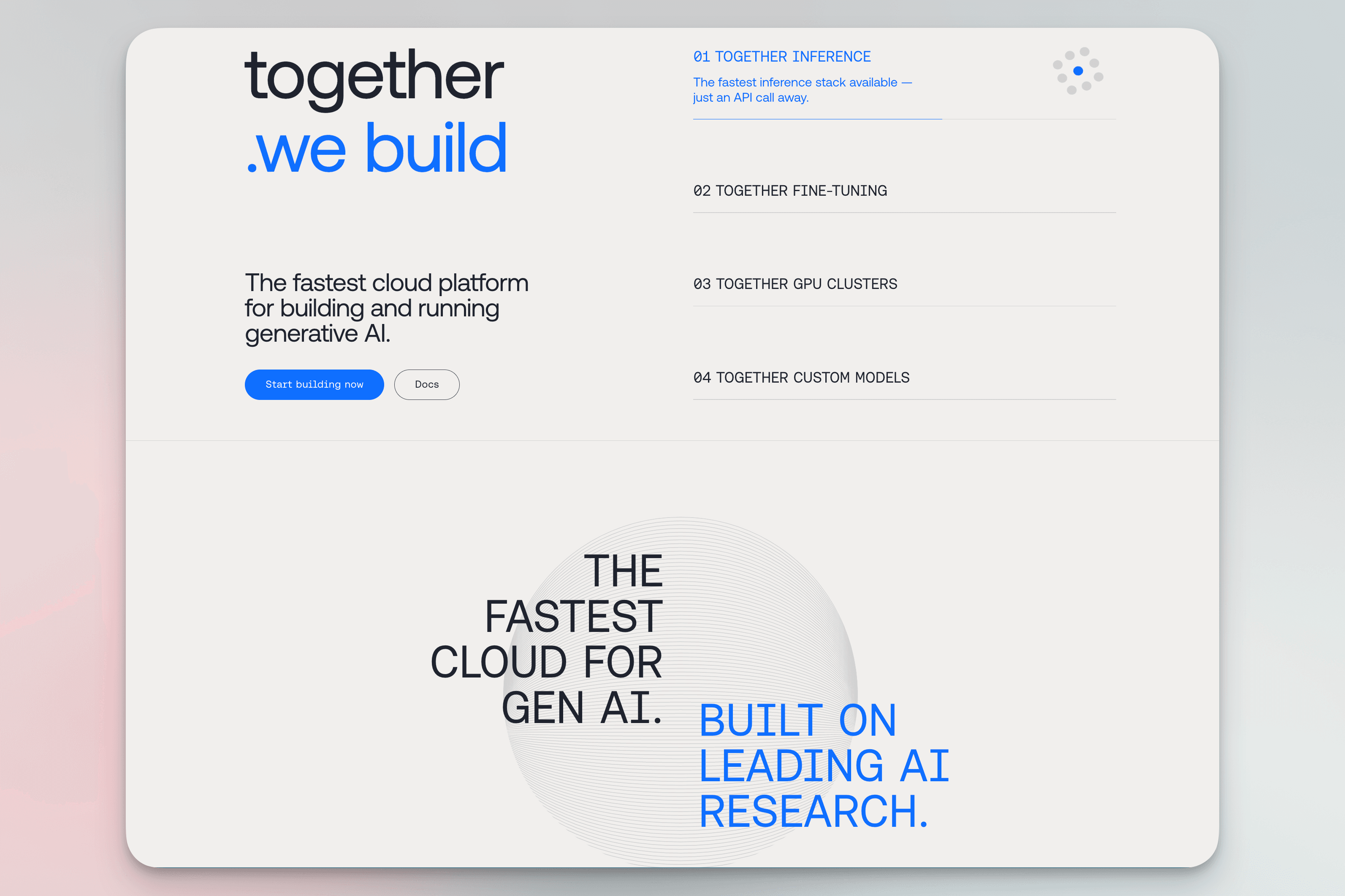 - Together Custom Models: Build state-of-the-art models from scratch with ease.